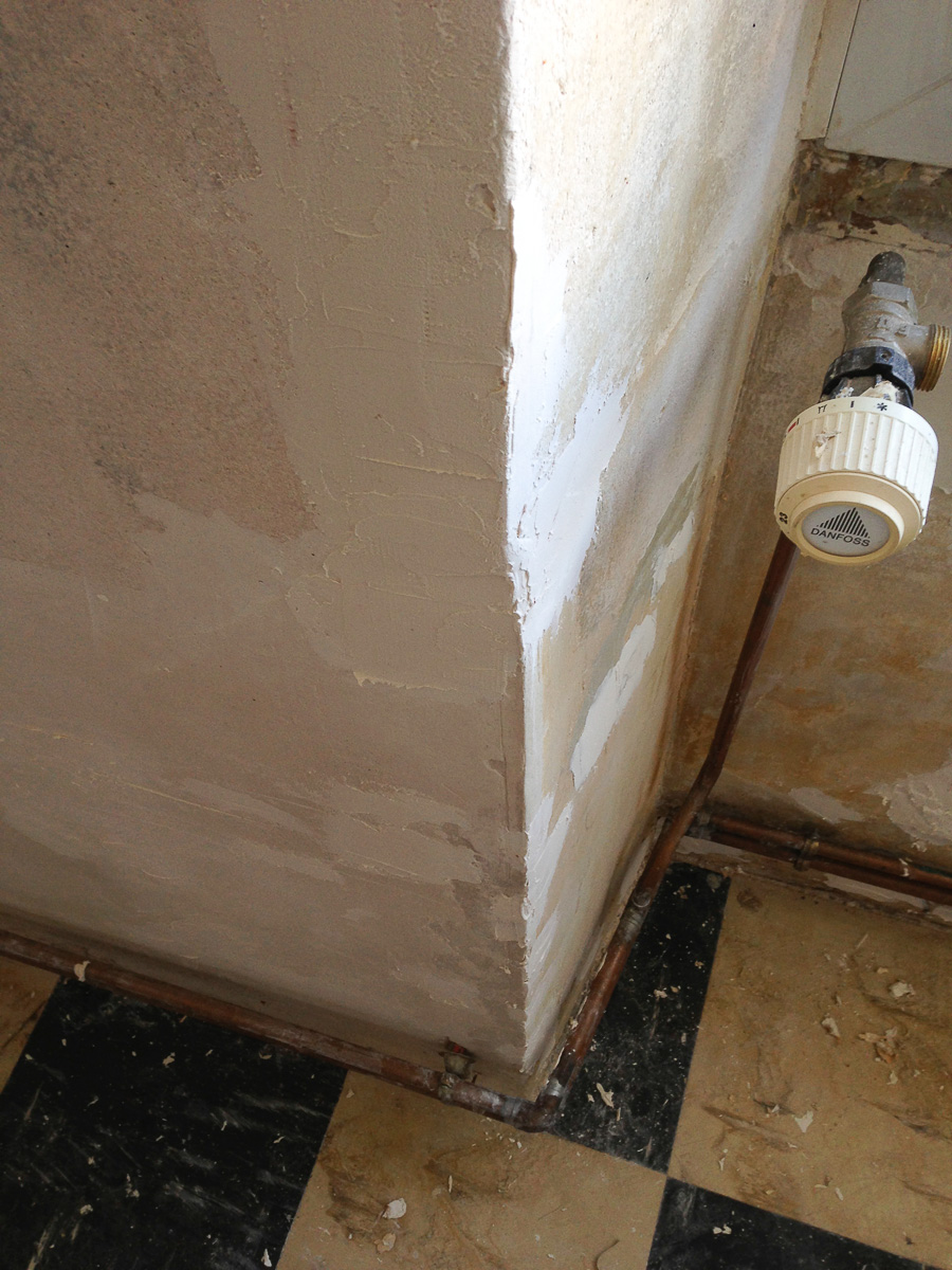 En tout il y a à peu près 1 à 2 jours de travail par pièce pour les enduits. C’est en effet très dégradé et sur les zones les plus épaisses il faut repasser plusieurs fois.