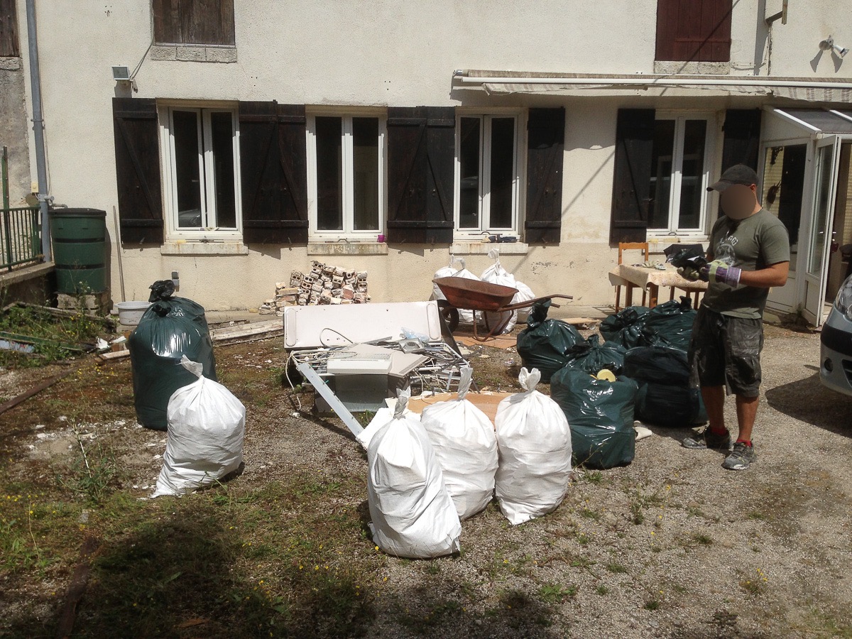 Aujourd’hui on benne tout à la déchèterie. 2 aller retours en remplissant bien le kangoo sont nécessaires. Il a fallut ruser car on ne possédait pas de carte valide. Nous sommes allé à Chaintreaux et Saint Pierre lès Nemours.