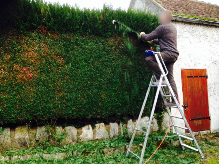 Petite coupe d’hiver pour la haie dans la cour. Une occasion de tester le tout nouveau taille haie électrique Ryobi. Ca marche super bien. C’était fini en une petite heure.
