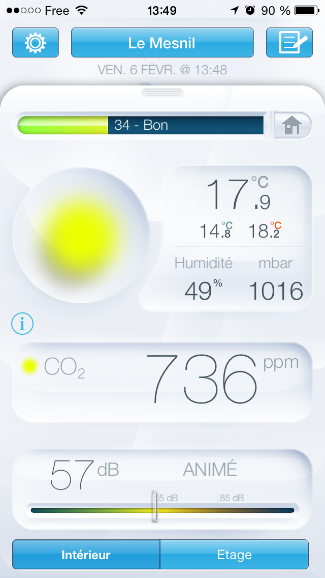 - La température, hygrométrie, taux de CO2, pression et volume sonore au rez de chaussé
