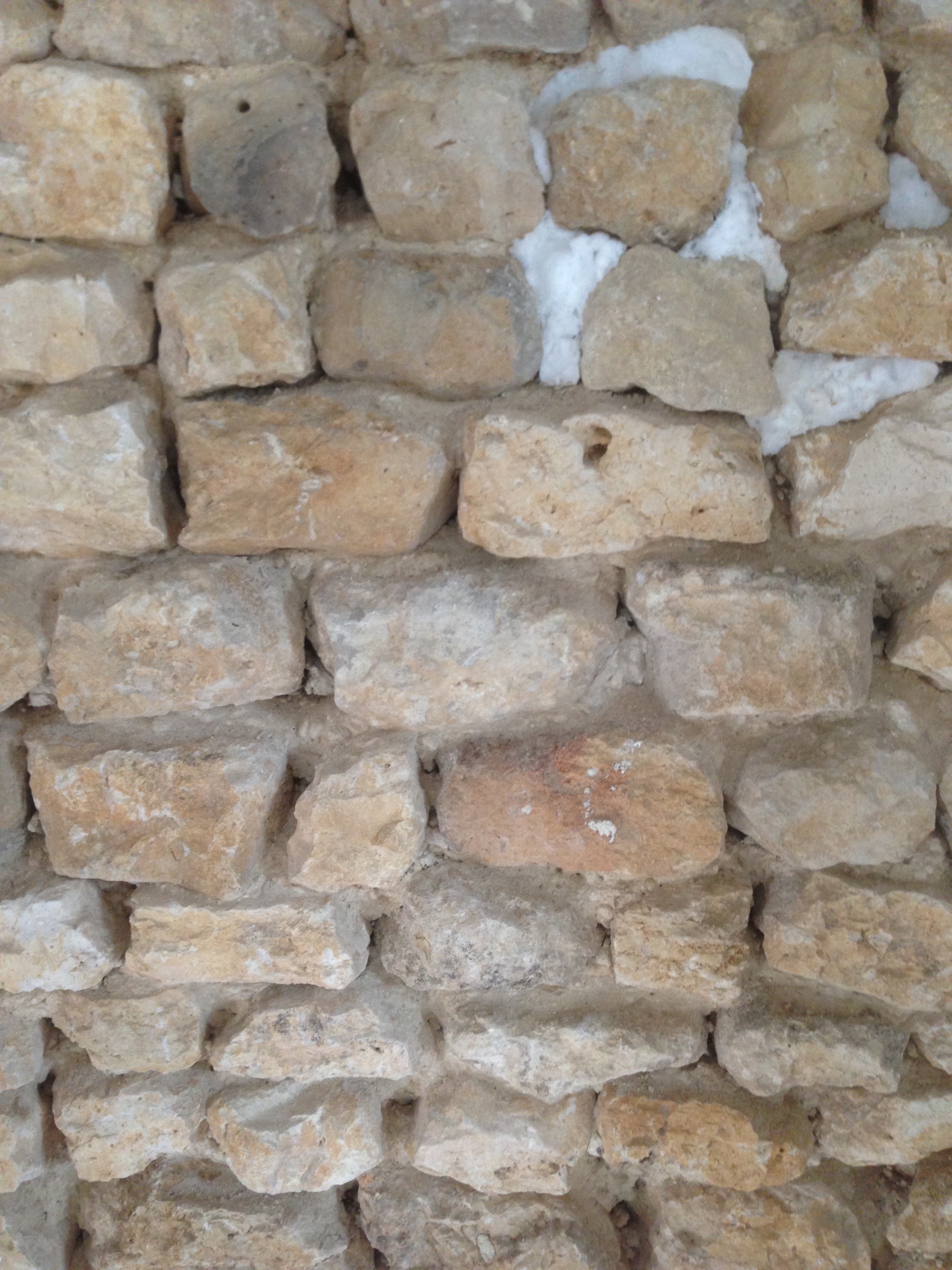 On change un peu d’activité avec de la maçonnerie. Il s’agit de jointoyer le mur de refend en pierre de la chambre. J’ai choisi de faire un mur à « Pierres vues » beaucoup plus rapide à réaliser je pense qu’à « Pierres apparentes ».