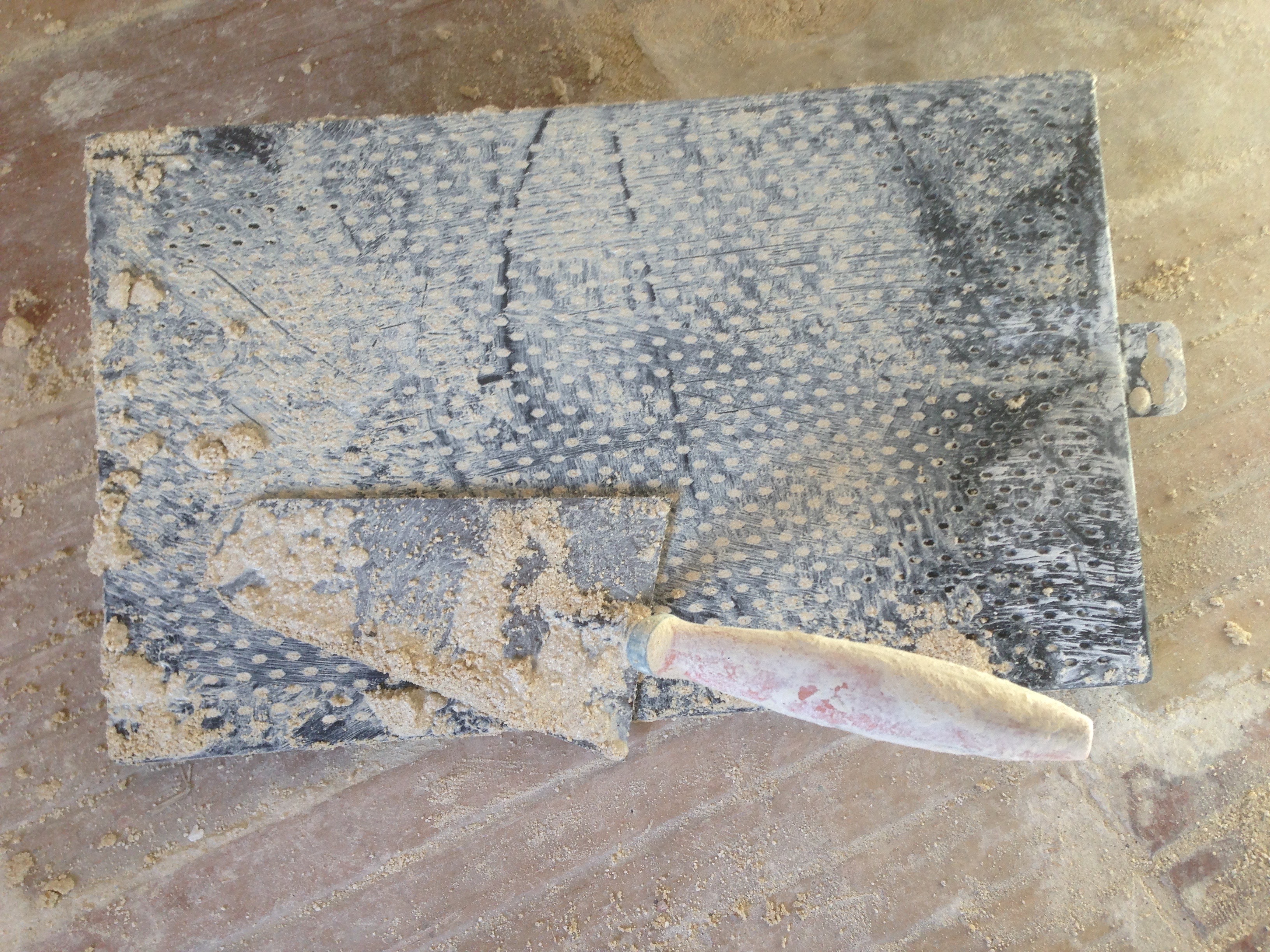 Les outils sont des classiques. Taloche et truelle.