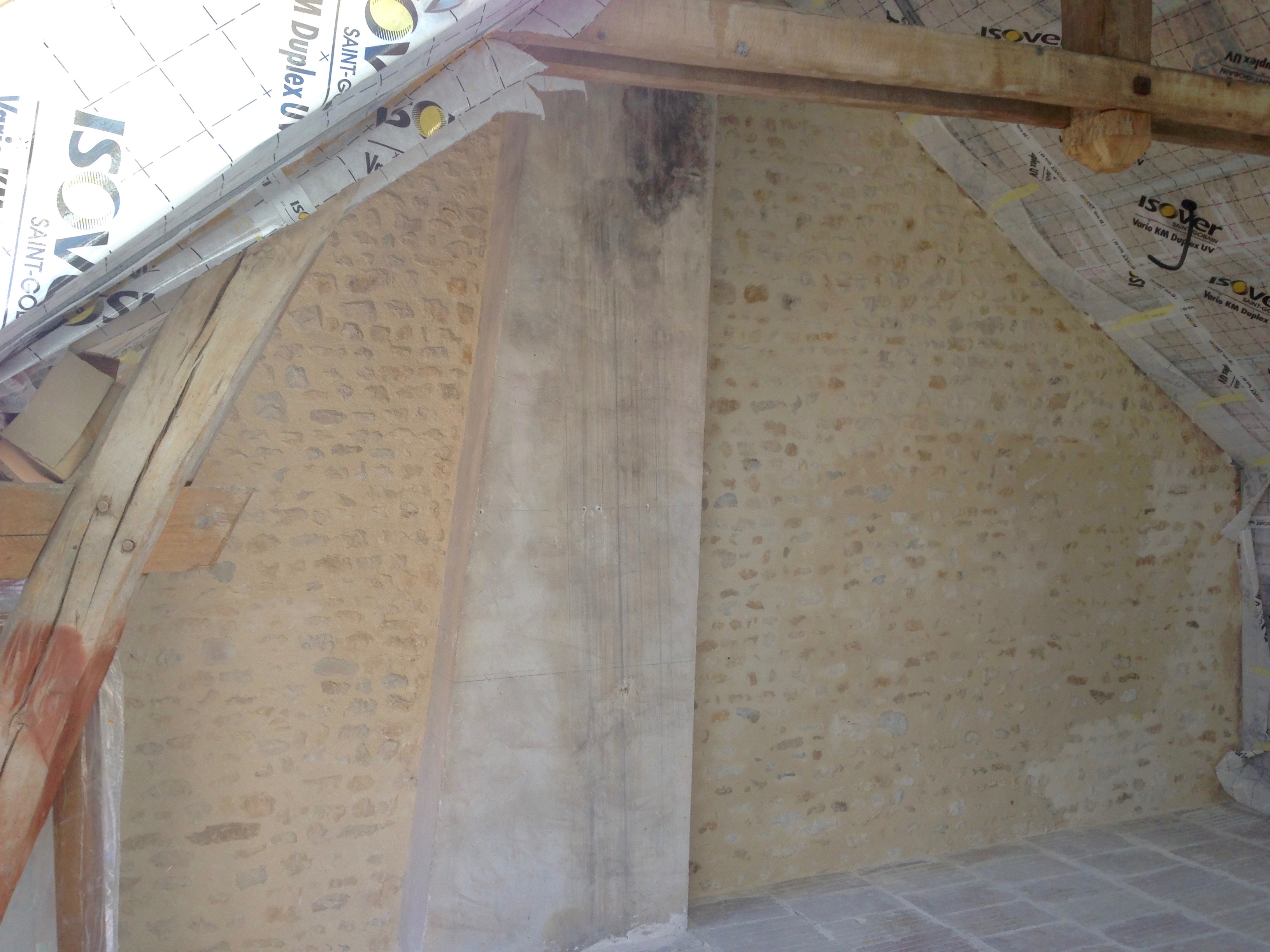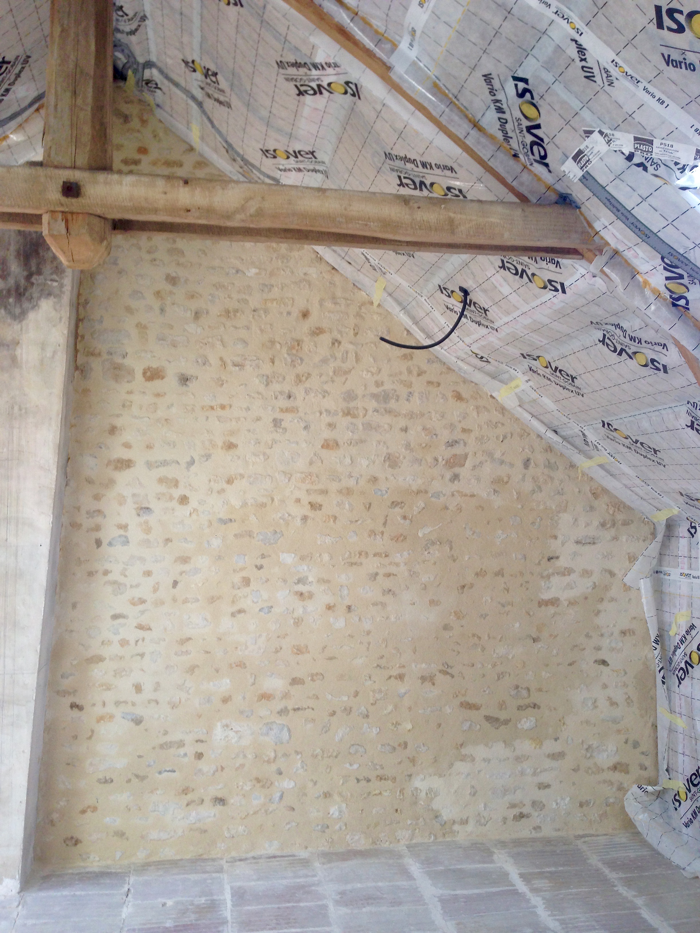 En tout pour la totalité du mur j’ai utilisé 11 sacs de 25 kg. Le mur fait environ 14 m2 soit presque 20 kg par m2 c’est énorme. Faut dire que les joints sont bien creux.