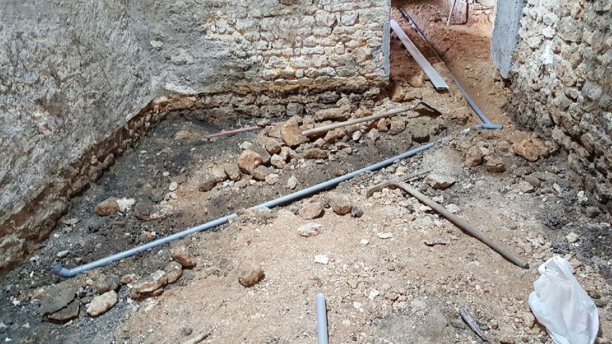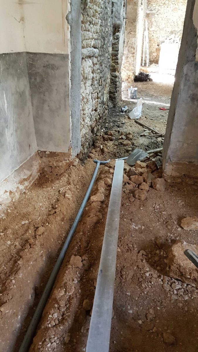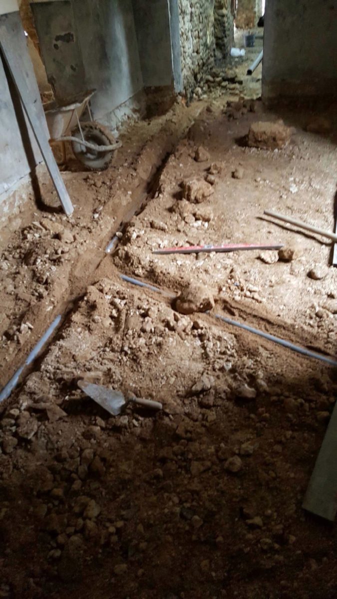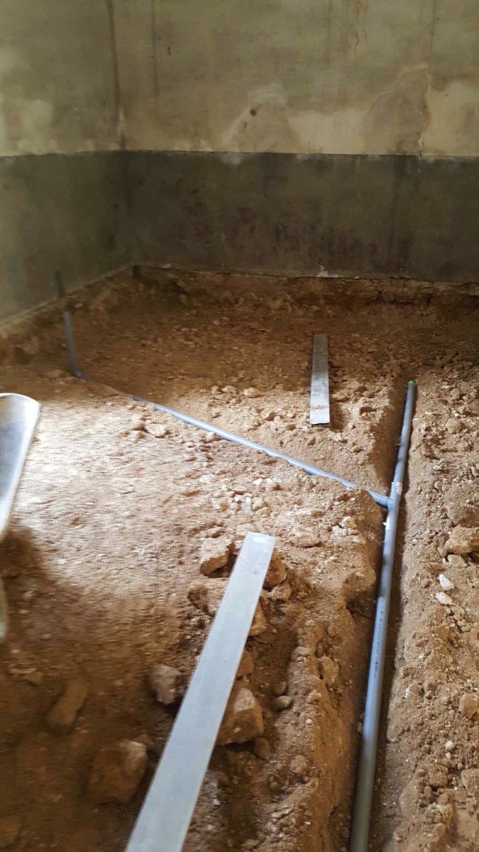 Les évacuations des eaux ménagères sont enfouies dans la terre battue.