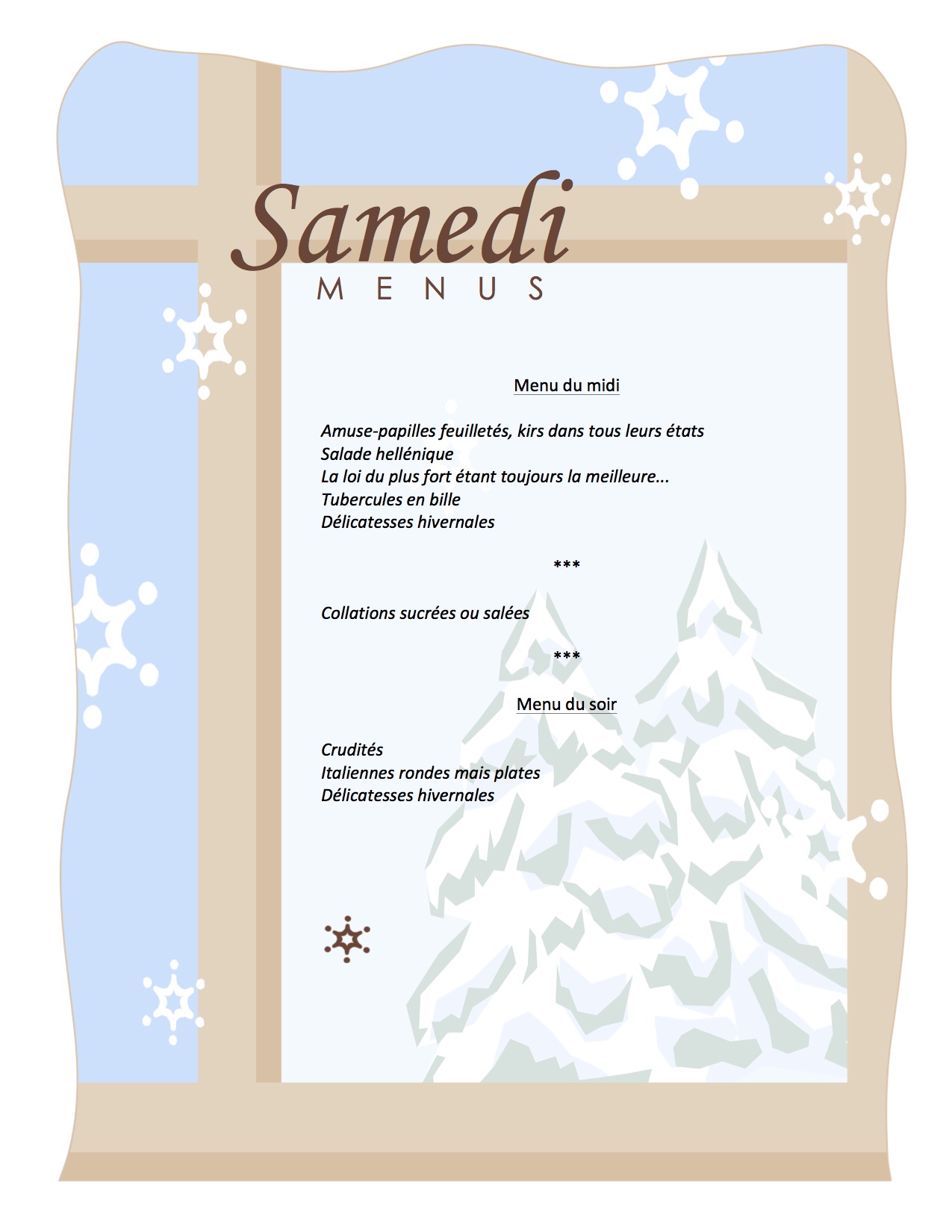Menu du samedi