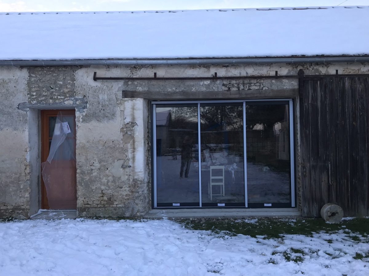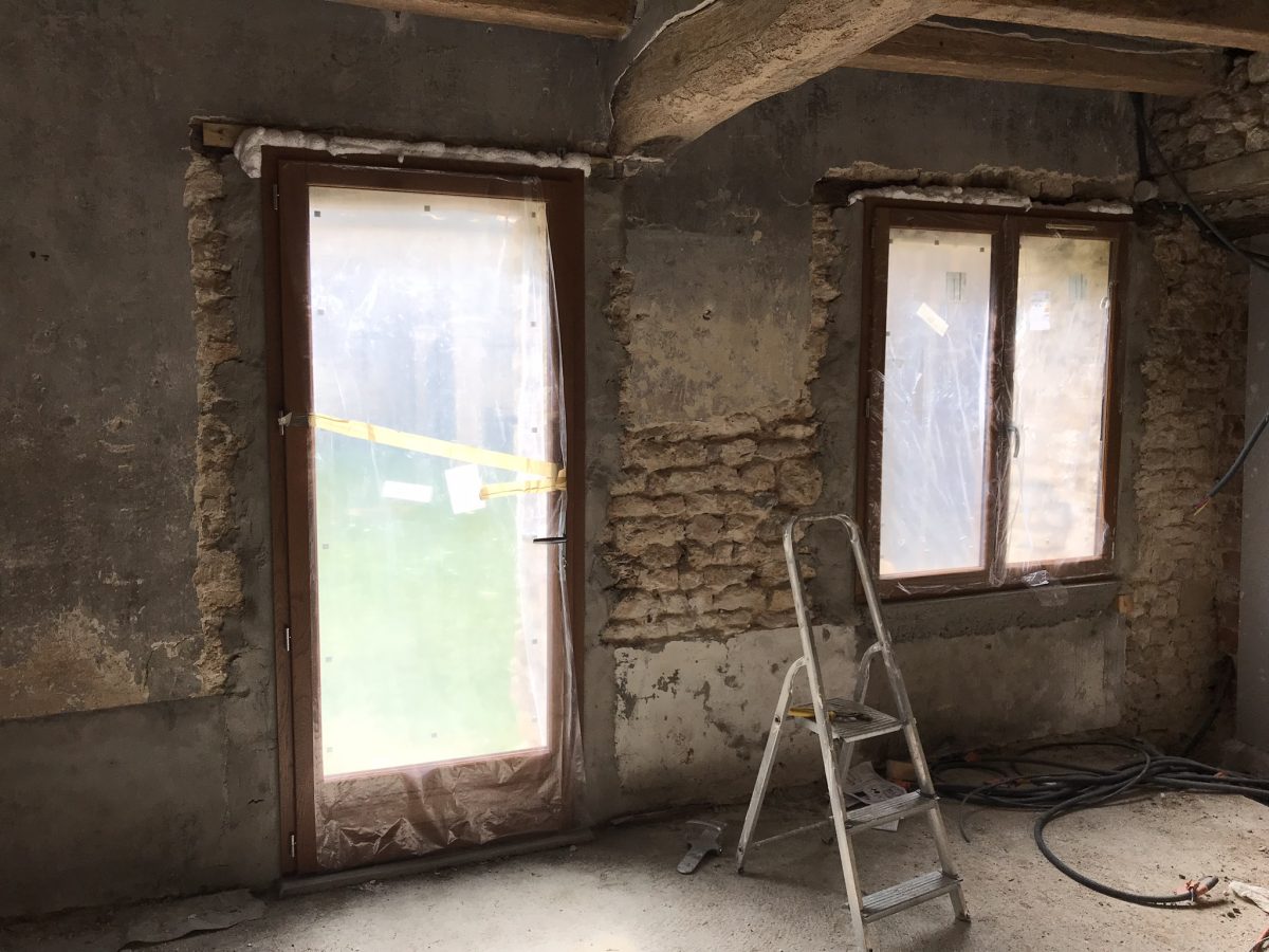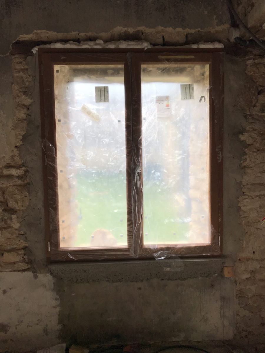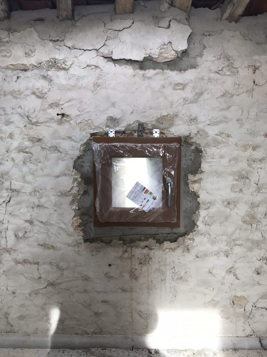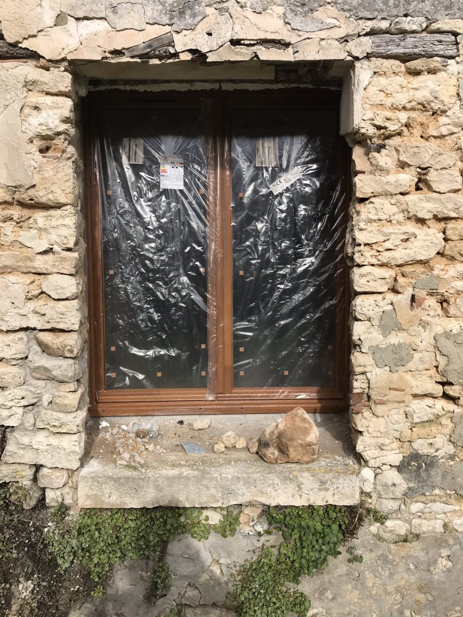 Voilà la maison abandonné est désormais « hors d’air », c’est à dire que les menuiseries ont été posées, et aux finitions près, la maison est désormais préservée des courants d’air.