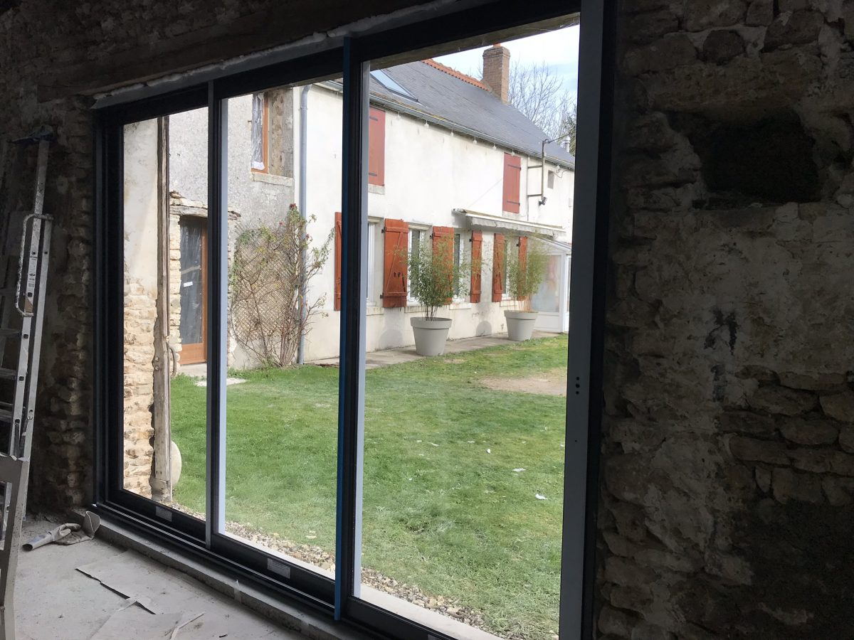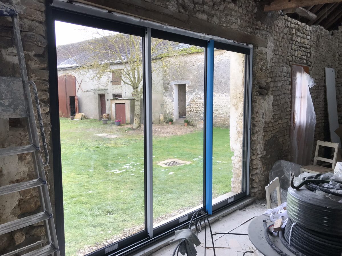 Je suis assez content de constater que tout ferme/ouvre/et coulisse correctement, après les quelques réglages qui vont bien. C’est toujours le stress car pendant le scellement et les fixations des dormants, ceux ci se déforment et peuvent perdre leur parallélisme. Là tout va à peu près bien. Donc c’est un grand soulagement.