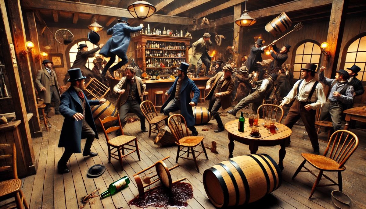 Onze compagnons furent interpellés, et le café du sieur Imbert comptabilisa des dégâts considérables, notamment, je cite, un tonneau de bon vin de Touraine, percé et renversé – ce qui, de l’opinion générale, fut jugé comme le plus grand préjudice de la soirée. »
