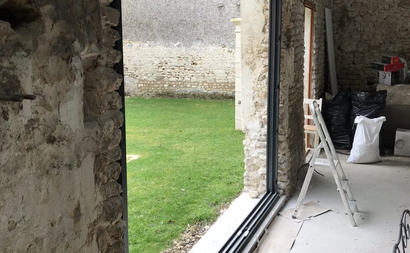 Pose du cadre de la baie vitrée